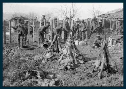 On April 30th they moved into trenches in the Doiran Sector during the Battle of Doiran. This battle for a breakthrough in the Bulgarian positions began on 22 April and continued intermittently until 9 May. The assault began with a bitter four-